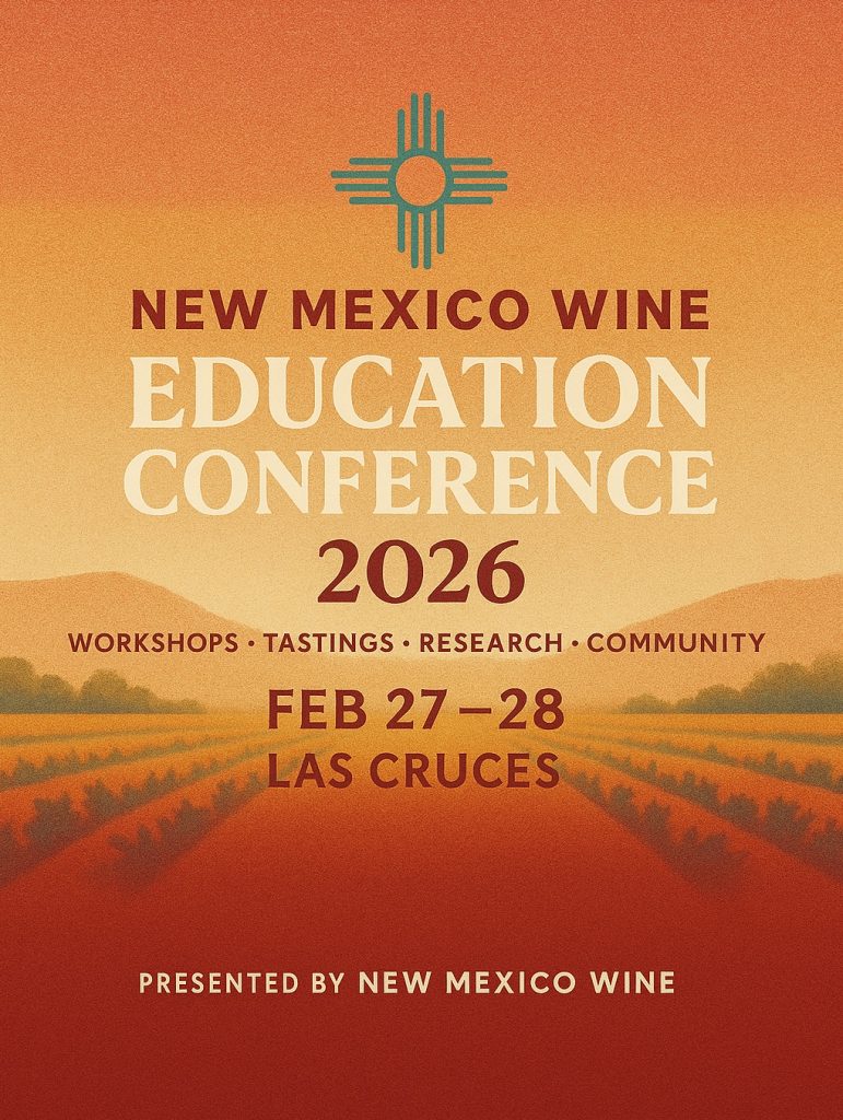 The New Mexico Wine & Grape Growers Association and New Mexico State University are proud to co-present the 2026 Wine Education Conference, to be held on the NMSU campus in Las Cruces on February 27–28. This conference and expo offer an exceptional opportunity for local growers, winemakers, and students to connect and learn from industry experts, researchers, and leading businesses across the wine trade. Just as importantly, it is a chance to gather friends and colleagues to share our wines while enjoying good food and meaningful conversation.